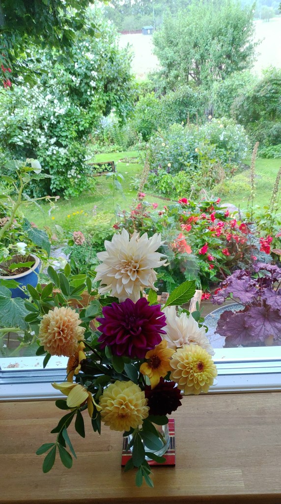 Hösten är här. Tog några bilder i regnet på några växter som blommar och tomatplantor som ger fin skörd