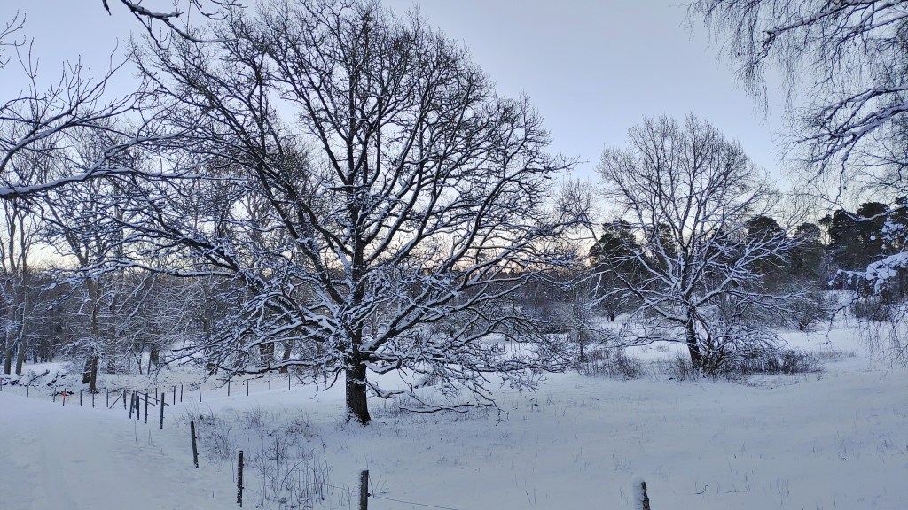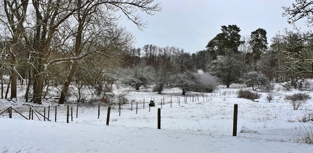 Det kom 1 dm snö under kvällen och sedan regn på natten sedan kyla och solsken